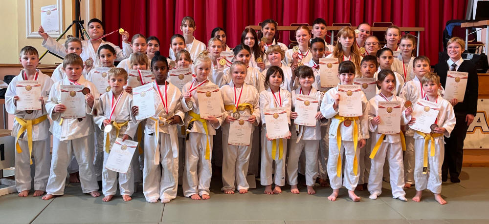 Über eine Goldmedaille freuten sich Daria Firita, Narin Salmi, Alicia Wiegank, Mia Großmann, Luisa Kirsten, Silan Salmi, Anna-Lena Schneider und Saskia Jozwiak. Platz 2 erkämpften sich Isabell Dörr, Shahd Alshiki, Lene Krüger und Marie Heinig. Bronze holten Toni Krüger, Paul Prüfer, Lina Aydin und Malak Alshiki. Mit diesen Ergebnissen erreichte der Sprottestädter Verein Platz 2 in der Mannschaftswertung. Um beim nächsten Turnier weiter oben auf dem Siegertreppchen zu stehen, gilt es die Techniken beim Training weiter zu üben und zu verfeinern.