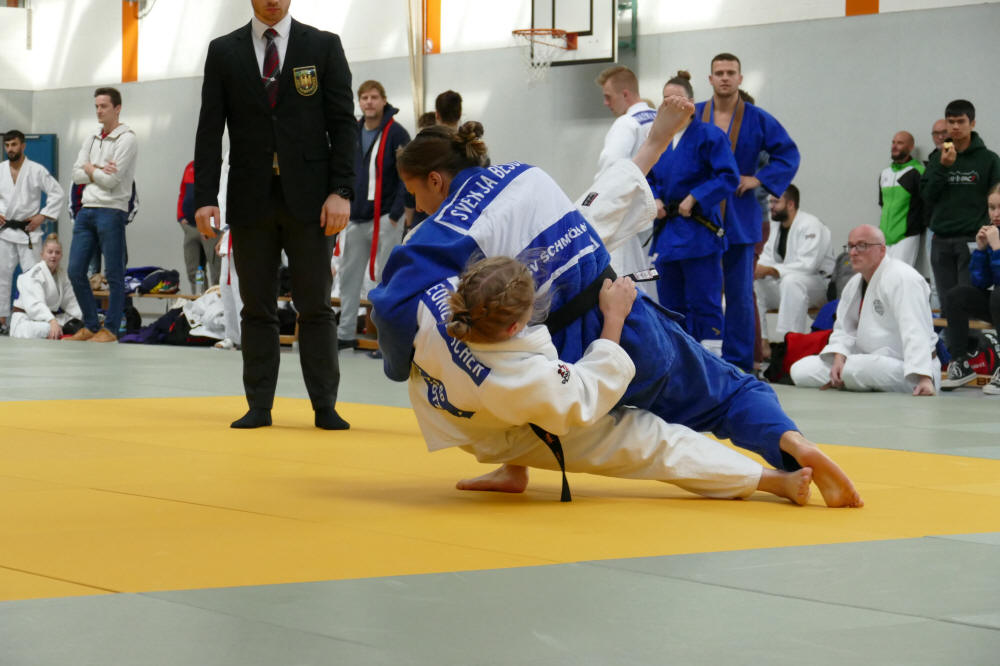 Beide gewannen souverän ihre beiden Poolkämpfe. Im Halbfinale blieb auch Luise Engelmann erfolgreich, während Svenja passen musste. Damit wurde Svenja Dritte. Luise ließ auch im Finale nichts anbrennen und holte sich nach einer Minute Kampfzeit den Ippon. Damit ist sie nach 2024 wieder Landesmeisterin im Judo.